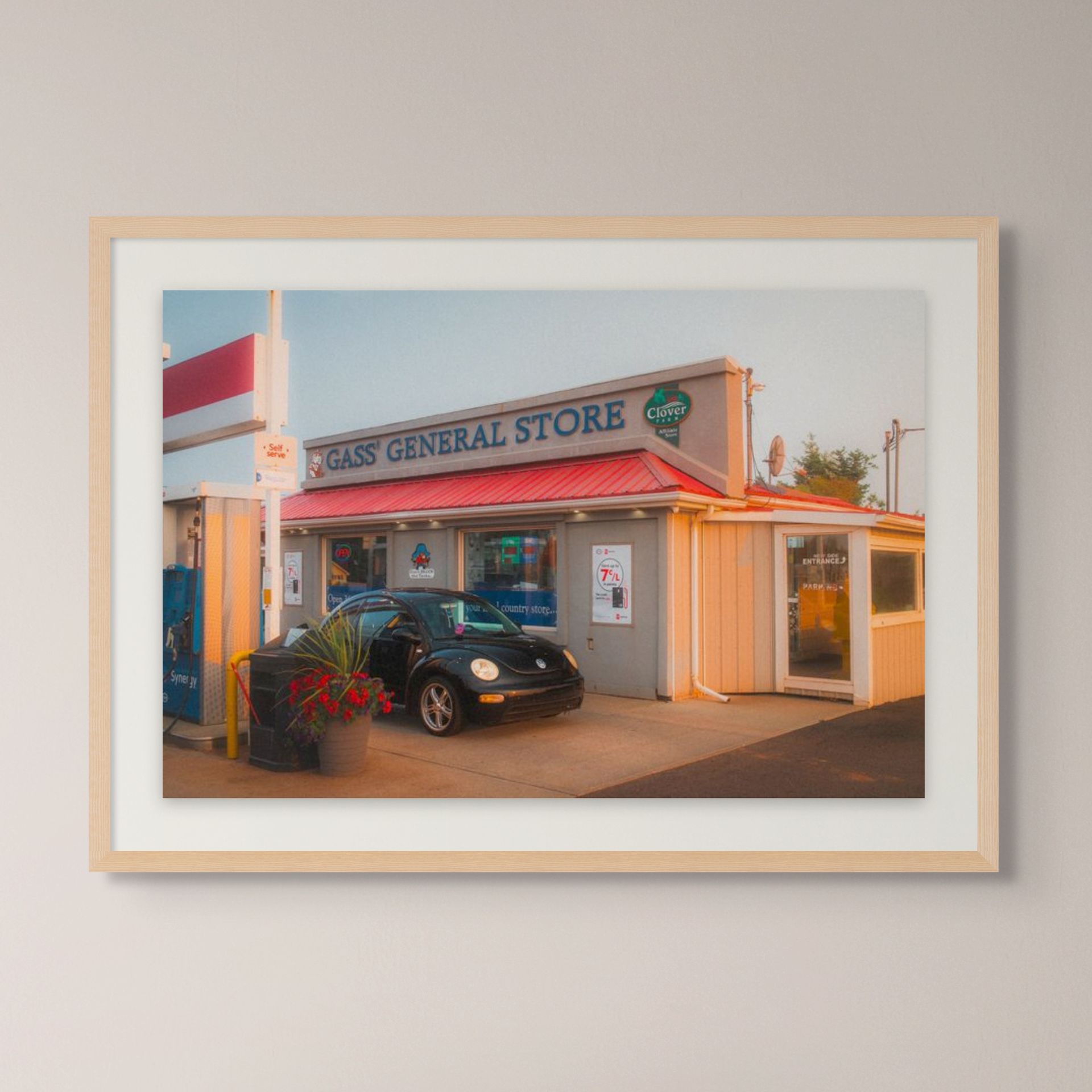 Bathed in warm evening light, the Gass’ General Store in Prince Edward Island captures the charm of small-town Canada. A roadside landmark with its red roof and familiar storefront, this photograph preserves the quiet nostalgia of everyday moments along the island’s winding roads.